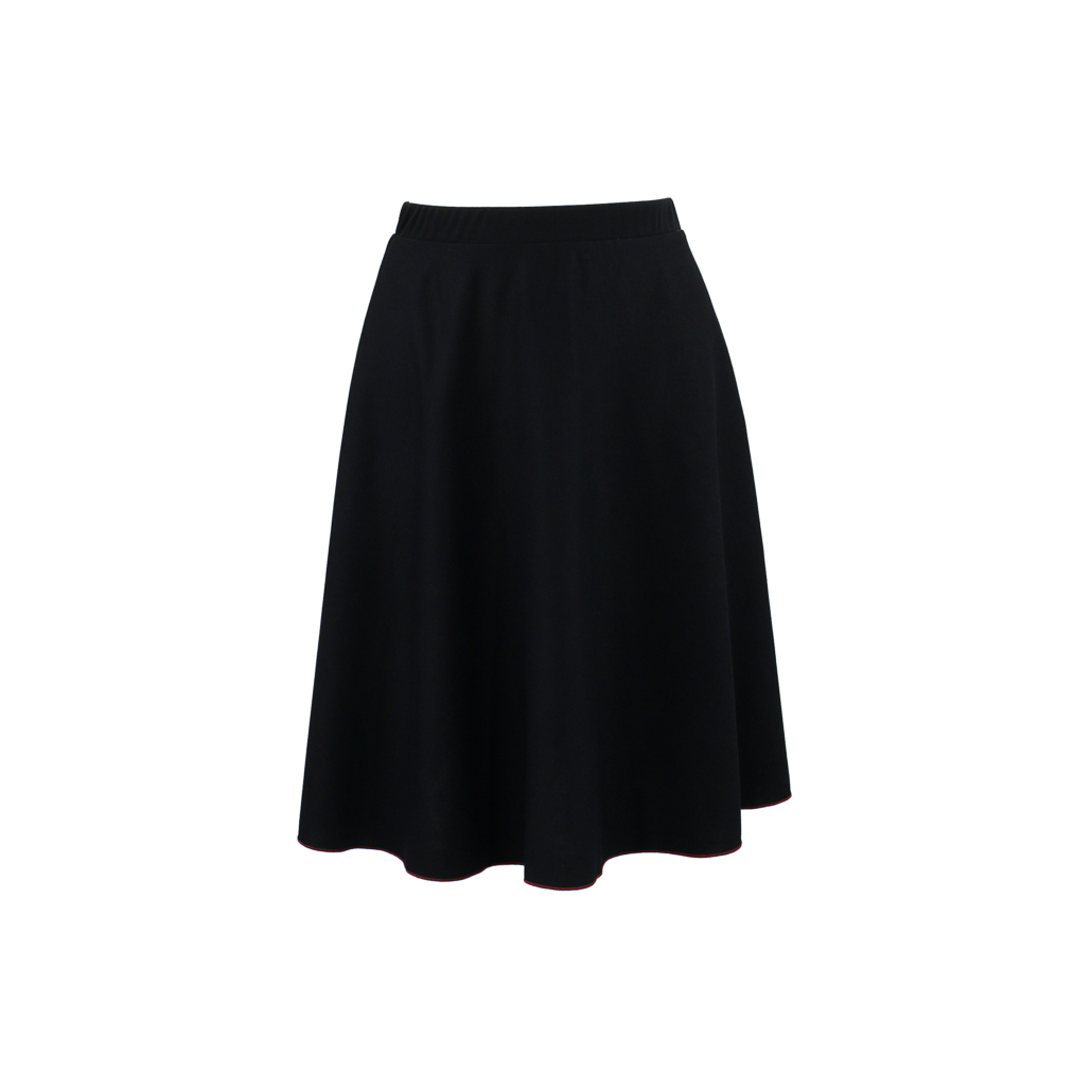 Der schwarze Rock ist leicht ausgestellt und feminin geschnitten. Ergänzt wird er durch eine rote Schleife, die traditionell gebunden werden kann. Das weiße Shirt trägt einen dekorativen Spruch, der dem Set einen modernen, trendigen Akzent verleiht. Beide Teile sind angenehm zu tragen, pflegeleicht und langlebig.